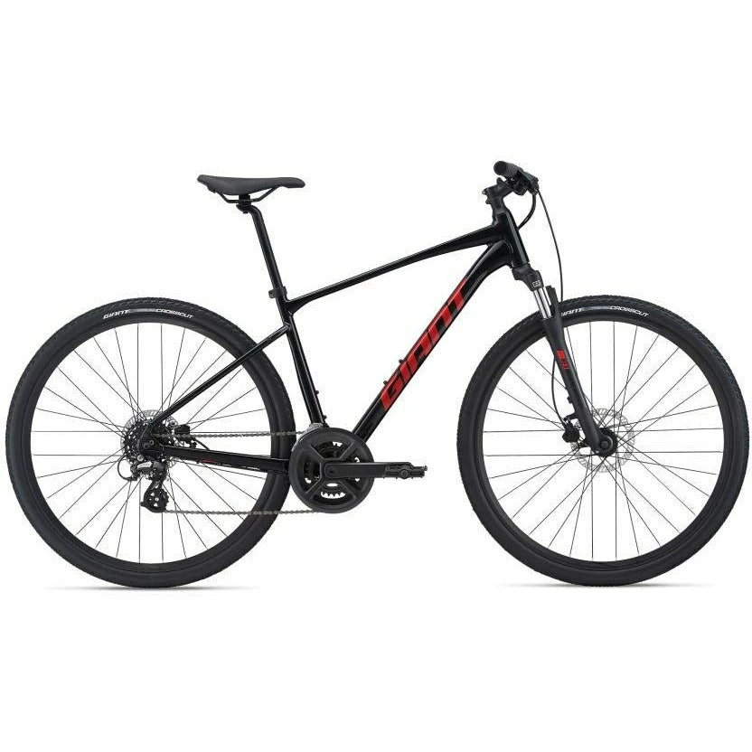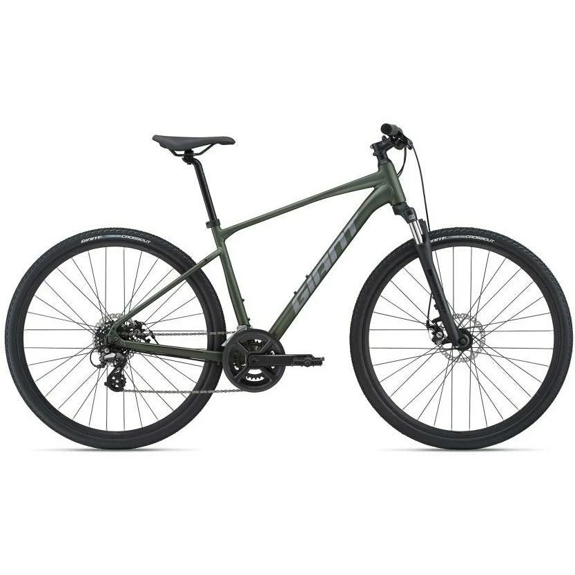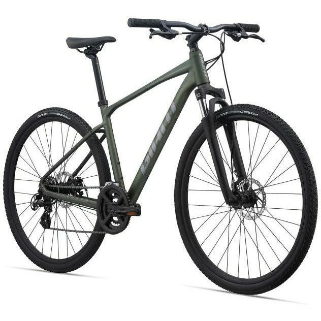 With its confident, flat handlebar positioning and lightweight ALUXX aluminum frame, the Giant Roam 4 gives you all the best qualities of a mountain bike and a road bike. Its front suspension and new D-Fuse seatpost absorb road shocks and vibrations, adding comfort and control. It has powerful disc brakes and durable components, so it can take some bumps on rough city roads. And the fast rolling 700c wheels with Giant’s CrossCut tires can handle smooth roads or dirt with less risk of a flat tire, making it a great choice for town-to-trail adventures.