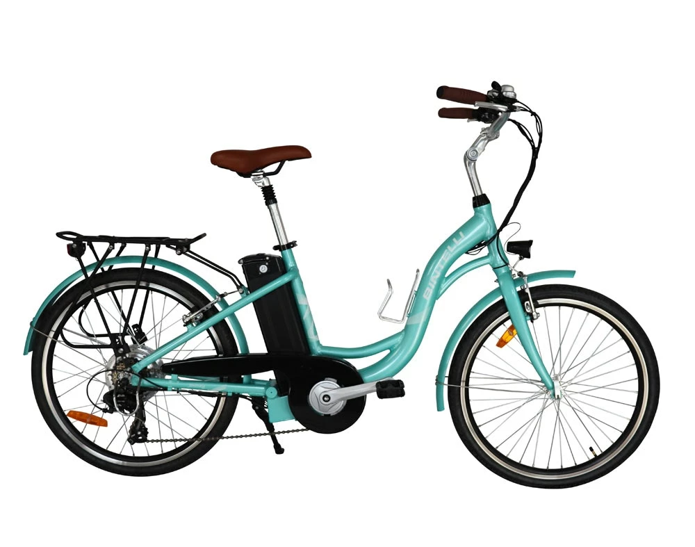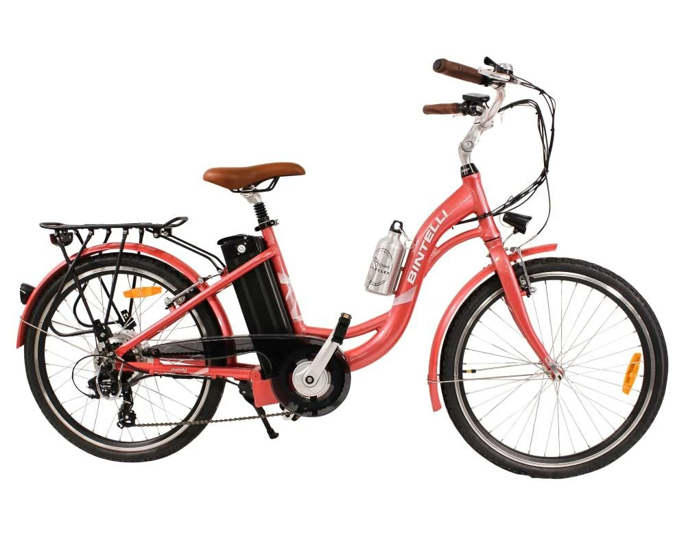 The Bintelli Journey is a classic styled step-through electric bike. Its ease of use is powered by a 350w motor and the seat post suspension ensures a comfortable ride. It features a rear tire rack for cargo and an LED display for the cadence pedal assist. Whether you are cruising on the beach or around campus, the Bintelli Journey electric bicycle does not disappoint.