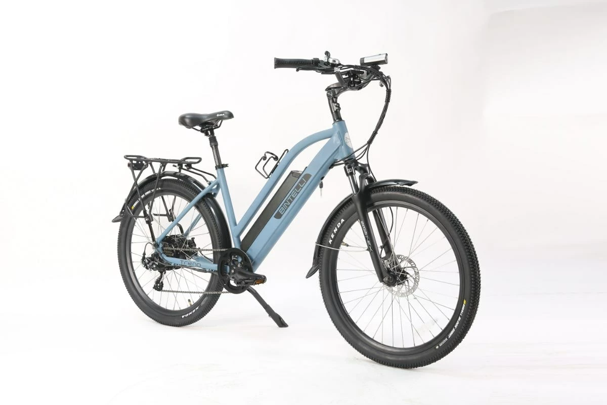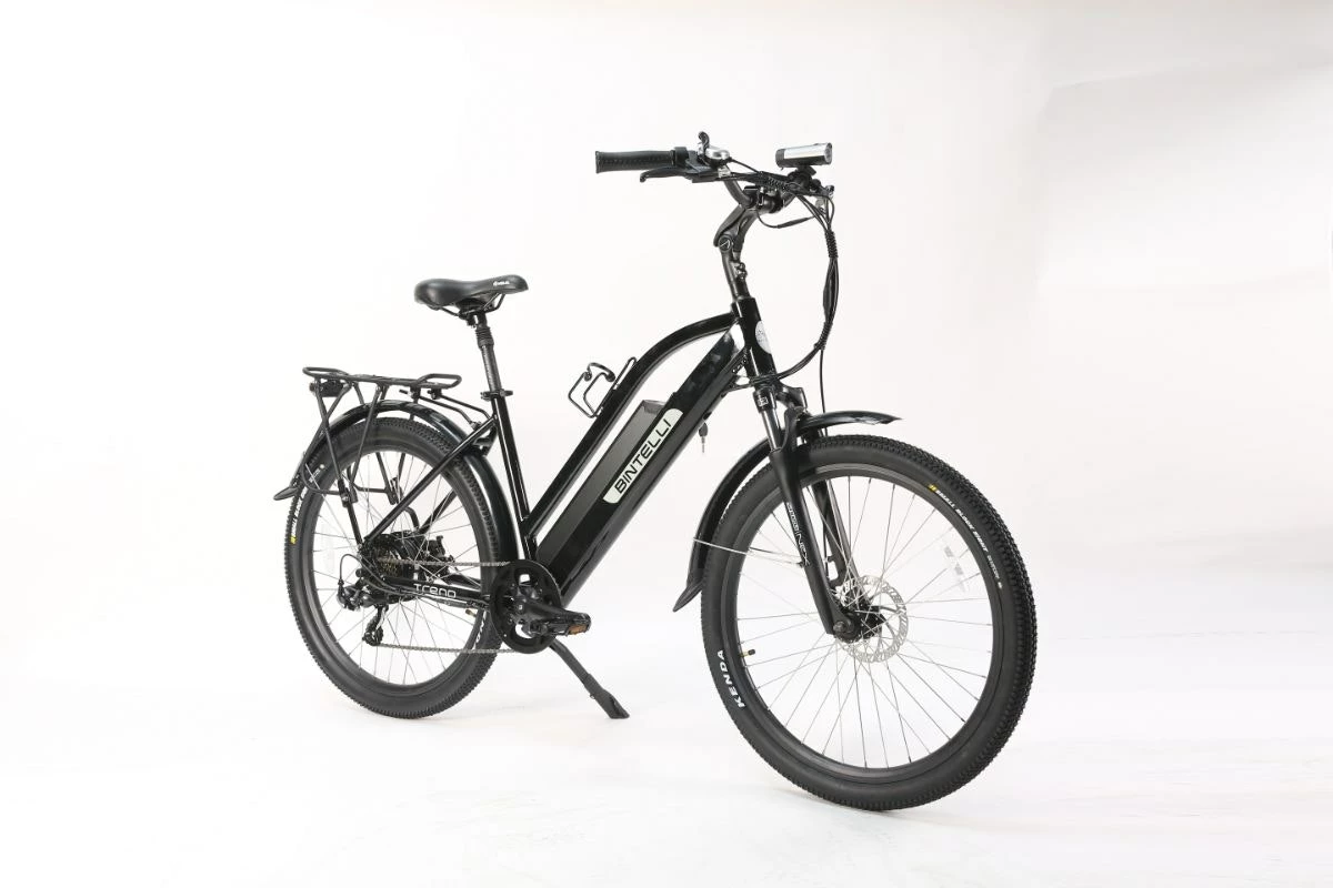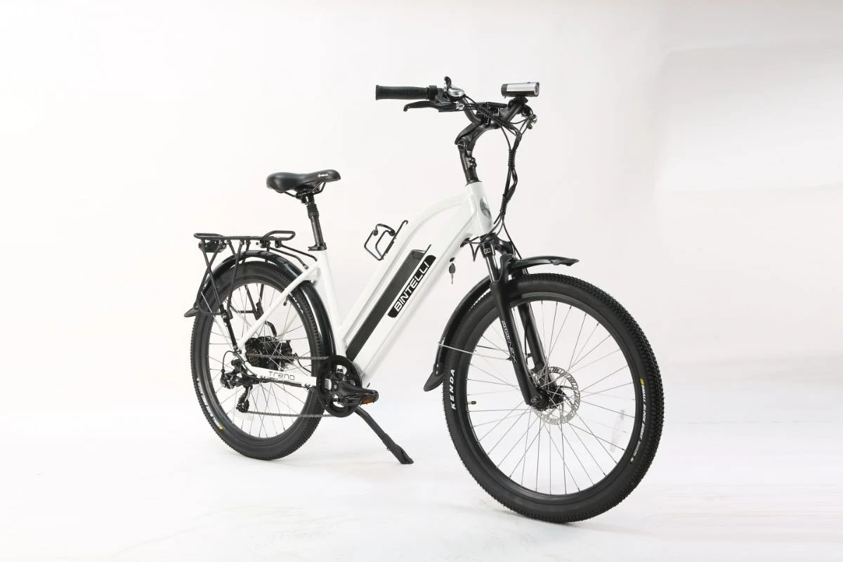 The stylish Trend is one of the top commuter E-bikes on the market. This electric bike comes with many standard features, such as a 12.5AH lithium ion battery, an LCD display, and a powerful 500 watt motor that is capable of reaching speeds up to 20mph. For your commuter needs weâve added in a rear rack and front suspension. Every Bintelli E-bike comes equipped with a headlight, taillight, seat post suspension, rim reflectors, a water bottle, and a UL approved charger. This model is available in many colors.