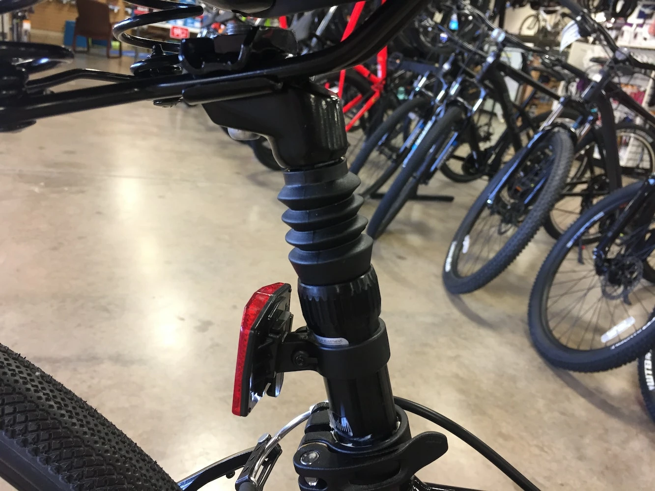 The most comfortable Hybrid bike we have ever ridden. The saddle is fabulous and the seat post has suspension to smooth the ride