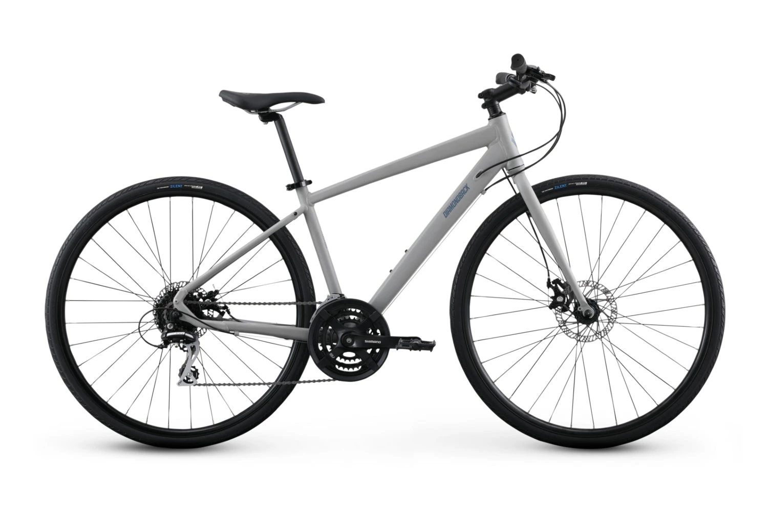 Riding the line between a lightweight, nimble road bike for speed & a mountain bike for sturdy, stable handling in a more upright position, the Metric 2 makes a great city bike or commuter bike. Whether you are looking for a fun ride down the local greenway or through the city on your way to work, the Metric 2 is your perfect companion. The 700c wheels & custom alloy frame keep the ride quick & efficient while flat handlebars give you that mountain bike stability. This all-around street bike offers fast & smooth 35c tires that are wide enough to tackle any obstacles the pavement throws at you. With a Shimano Acera 8 speed drivetrain, rack & fender mounts, & strong double wall wheels, you’ll always be equipped for your next adventure.
