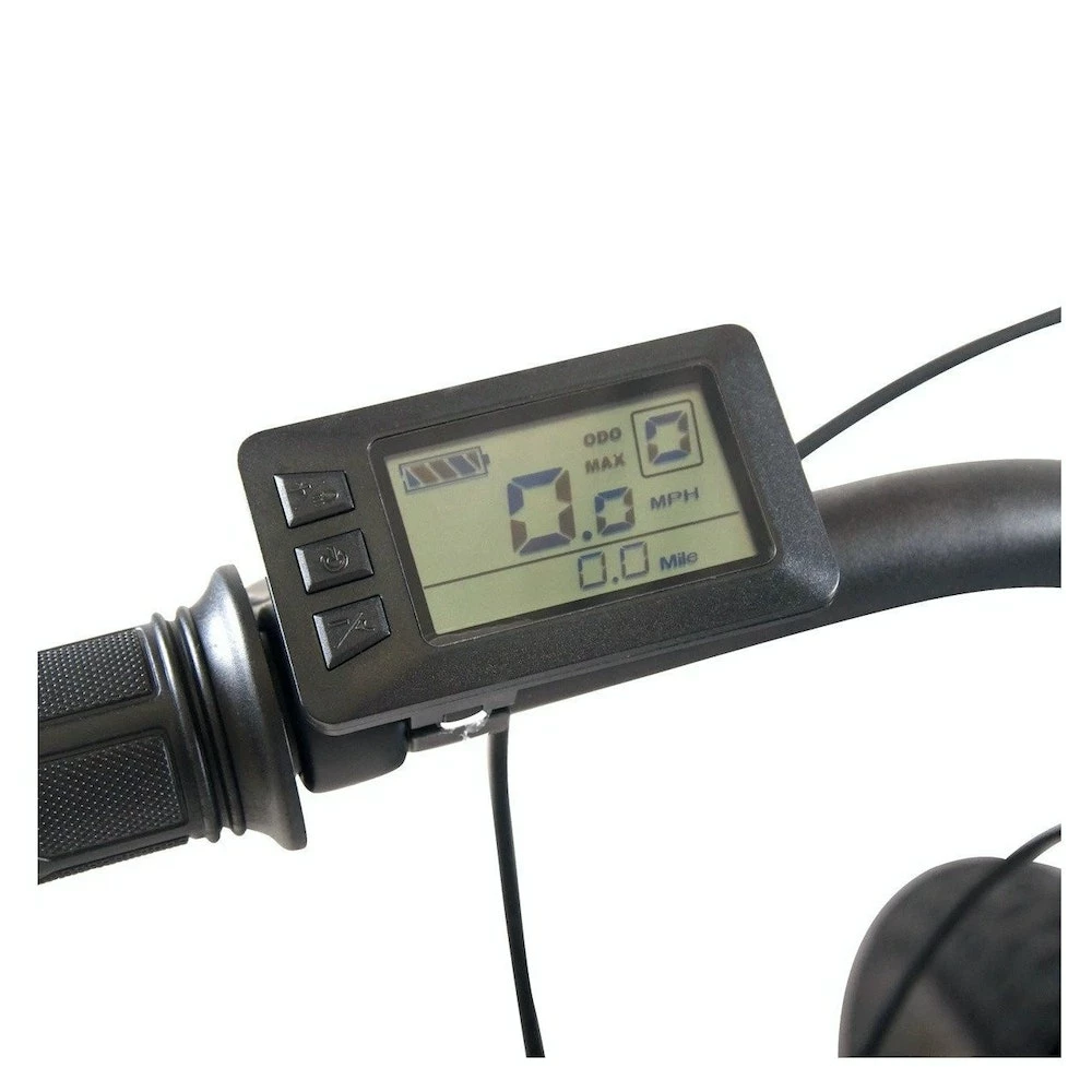 The eTrail offers a 500W rear hub motor, a frame integrated 48-volt lithium-ion Greenway battery, and a max range of 35 miles. The LCD display gauges battery life, motor output, assistance level, speed, trip and total distance as well as trip time. With dual assistance options you can use pedal assist or just the throttle- and can be ridden without assistance at all to increase its range. Top speed is 20 MPH and extras include a bell and a high powered front light and a unique power shut-off braking function that will extend the range of your battery.