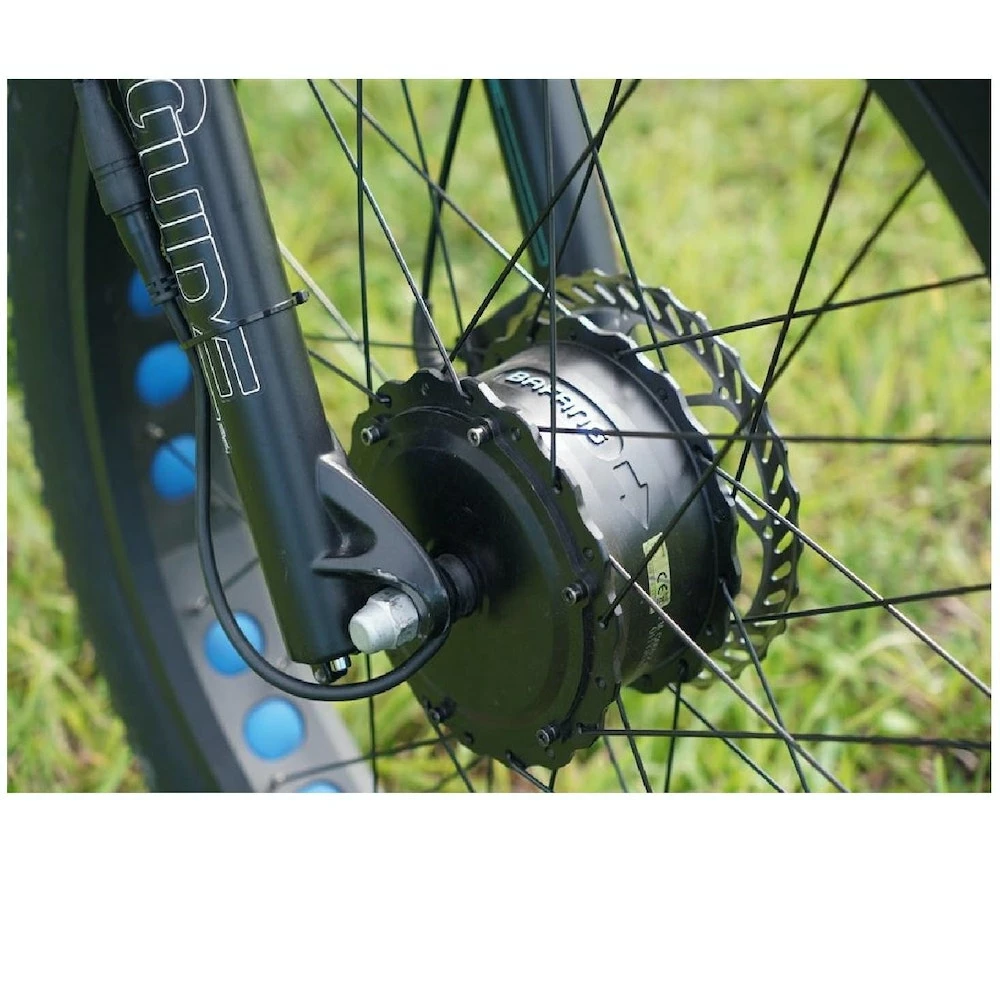 With 1500 watts of power, the EUNORAU DEFENDER S was designed to defeat all kinds of terrain and weather conditions, even being able to carry additional weight. This electric bike model is especially popular for the hunting enthusiasts; having the strength to pull or carry the game back to your vehicle. These brakes are sensitive, but provide efficient and ample force when braking. When riding in harsh conditions, they break swiftly and can be relied upon to ensure your safety. The double-sided aluminum bash guard on this Defender S model helps protect the chain ring teeth from strikes, while also keeping the chain locked firmly into place. There is also a built in chain guide to reduce the chances of derailing. Light the path with the front light powered by the bike’s battery. It can be turned on and off on the handlebar control pad. This LCD display delivers necessary information for riders: battery life, riding speed, mileage, pedal assist level etc.. With waterproof connectors, the display is an important tool that defines an great electric bike – keeping track of essential factors that are valuable to know when cycling.