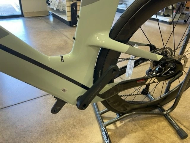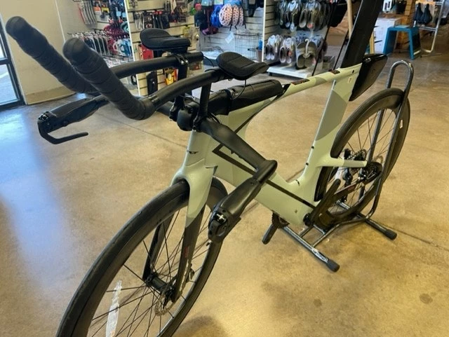 Our most popular triathlon frame decked out with a Shimano electronic groupset, Reynolds carbon wheels, and hydraulic disc brakes. World championship-winning aero efficiency.