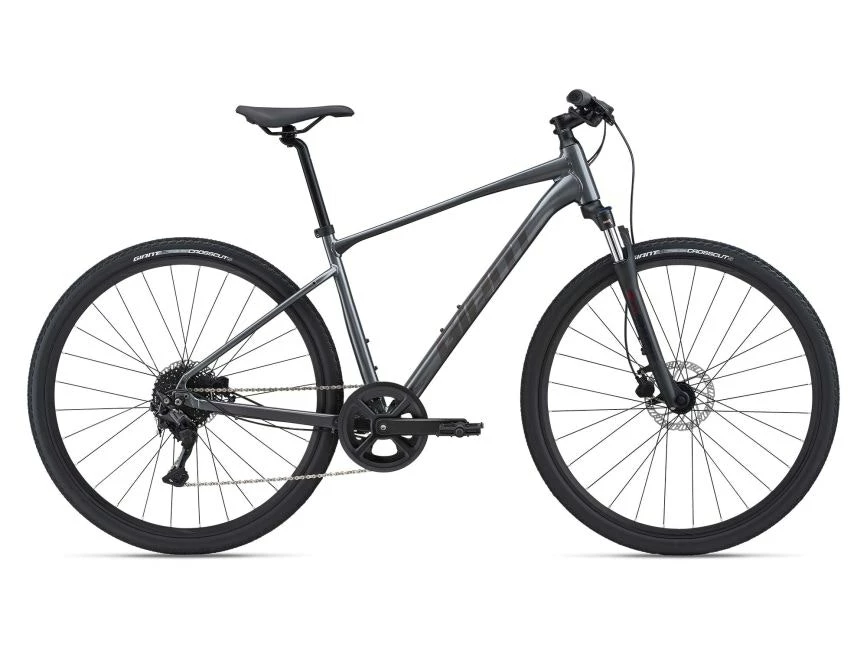 With its confident, flat handlebar positioning & lightweight ALUXX aluminum frame, Roam gives you all the best qualities of a mountain bike & a road bike. Its front suspension & new D-Fuse seatpost absorb road shocks & vibrations, adding comfort & control. It has powerful disc brakes & durable components, so it can take some bumps on rough city roads. & the fast rolling 700c wheels with Giant’s EasyRide Tubeless tires can handle smooth roads or dirt with less risk of a flat tire, making it a great choice for town-to-trail adventures.