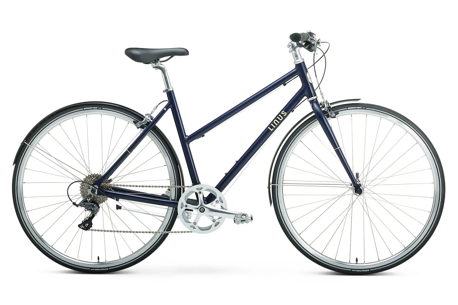 Well-suited for quick errands and longer commutes. Reflective tires complement the light-weight alloy frame while matte shades of indigo and black establish an air of understated class.