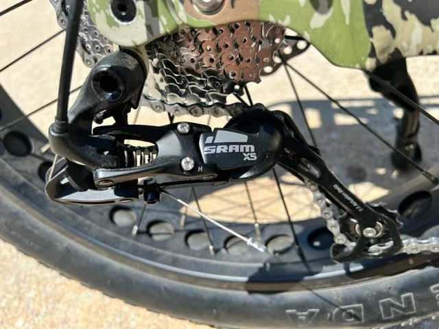 SRAM drivetrain: Built with a wide range 9-speed SRAM drivetrain that takes the abuse of the large amounts of power the Apex produces and allows you to adjust your gears for steep ascents and descents.