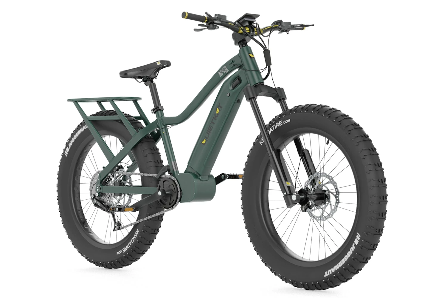 QuietKat’s most popular hardtail electric fat bike features an integrated battery and motor system and is equipped with top components including adjustable air suspension, 4-Piston Tektro hydraulic disc brakes, and a wide-range 9-speed SRAM drivetrain.