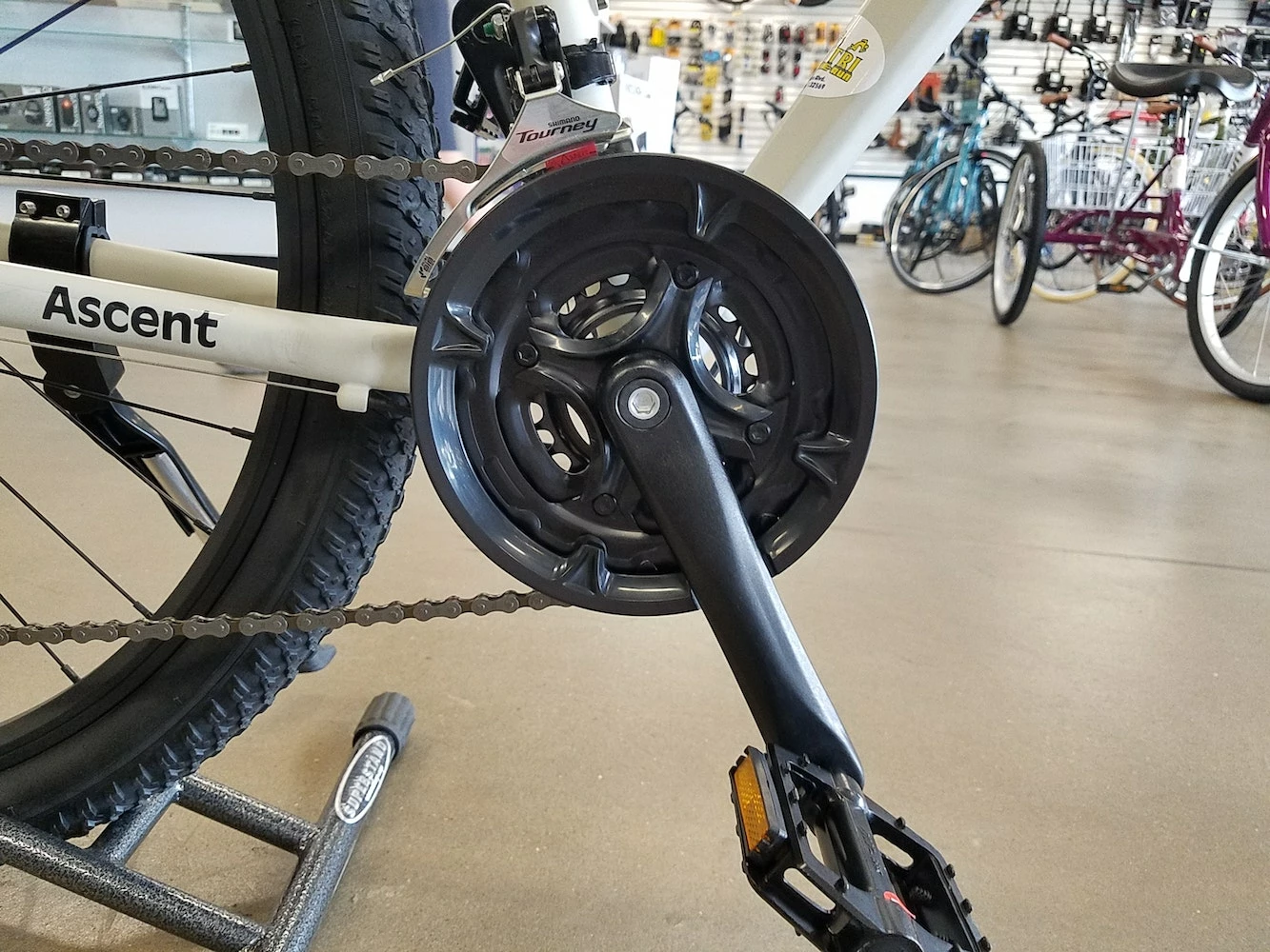 Gearing – Get up climbs and easily take on varying terrain whether dirt, gravel, or paved with 21 gear combinations. Plus, Ascent’s Shimano Tourney derailer with easy Rapidfire shifters offers quick, intuitive shifting at your fingertips.