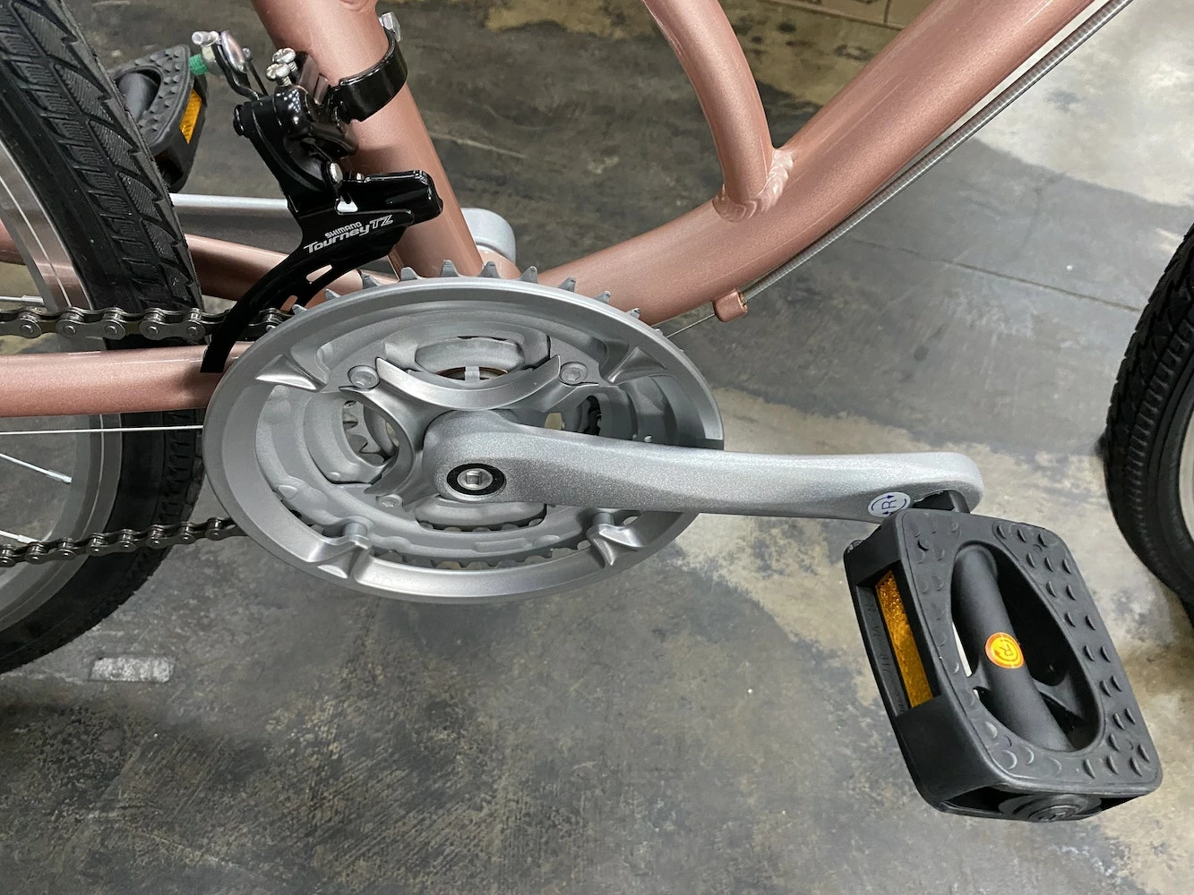 Equipped with name brand components such as a Shimano Tourney 21 speed drivetrain and Megarange gearing, this bike allows for fast and easy gear changes, which makes cycling for your commute, fitness, or weekend ride a gratifying experience. Additional features such as a comfort saddle, twist grip shifters, ergonomic brake levers, and a sturdy rear mount kickstand provide everything you need for a day spent gallivanting through a variety of terrains.