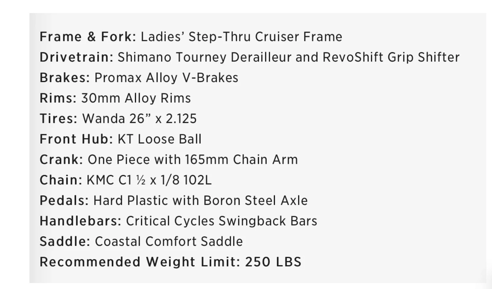 Chatham is constructed from a hand-built steel shock-absorbent frame. The durable pedals are made from hard plastic with a boron steel axel. Command your ride with Retrospec’s Swingback Bars and KT built-in coaster brake. Wanda tires grip to the path ahead and easily adapt to slick conditions, bumpy roads, and grassy straights.