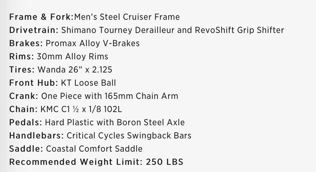 Retrospec Chatham Beach Cruiser 7-Speed 26″ – Matte Black 2022