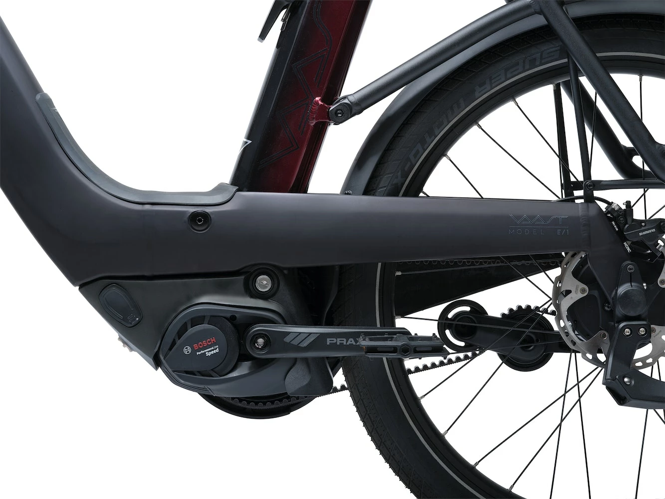 E/1 Enviolo model features the premium, Dutch engineered Enviolo ST internal gear hub. With effortless shifting between infinite gear ratios, low maintenance requirements, and a near silent ride, Enviolo is an exceptional e-bike drivetrain. In combination with the Gates Carbon Belt Drive, riders are ensured a unique and comfortable ride feel.
